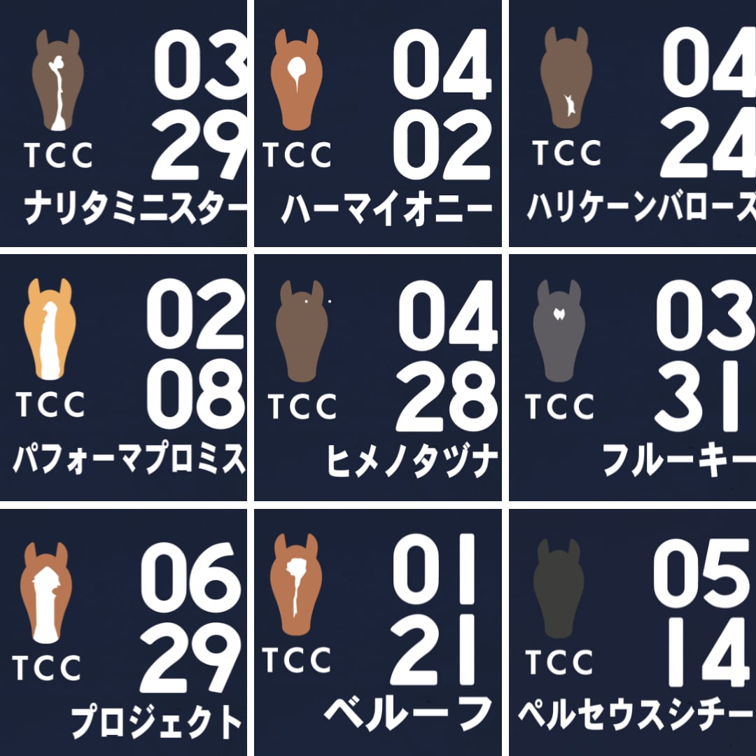 TCCから、待望の新作コットントートバッグが登場! なんと、TCCホース全頭からお気に入りのデザインを選べます♪ TCCホースのイラストは、「TCC × 賀茂神社 オリジナル絵馬」をモチーフにデザインしました。 こちらのTCC Horse " Marche Tote "は、少し長めのショルダーで、肩掛けしやすいのがうれしいポイント。 A4ファイルもすっぽり入る、こだわりのたっぷりサイズで、中の荷物もスムーズに取り出せます。 毎日のお出かけに使いやすいデザインです。 (かわいらしいSサイズはこちら→ https://store.tcc-japan.com/items/116998846 ) こちらのカラーは、シックなネイビー☆ TCCのホースたちが全員集合のこちらのトート。 お気に入りの子の名前と誕生日が入ったデザインで、さりげない日常を一緒に過ごしませんか? 顔の流星もその馬に合わせてデザインされています! ■素材 : コットン ■サイズ : W460×H320×D140mm ■容量: 14L ・本商品は馬グッズを通して競走馬・引退馬支援に取り組む株式会社未来屋「馬Site」さんとのコラボ商品です。株式会社未来屋様はTCCのCSRパートナーにもなられており、TCCの活動にもご声援を頂いております。 ----------------------------------------------- 【コレクション例】 1. ヴェローナシチー モデル (Navy) 芦毛の馬体が愛らしいヴェローナシチーをモデルに、シックで汚れの目立ちにくいネイビーカラーで仕上げました。デザインには、彼の誕生日である3月25日が、競走馬時代の調教ゼッケン風に記されています。 力強くも優しい彼のお顔を、かわいいシルエットで表現しました。 2. ゴールドフラッグ モデル (Light gray) あのゴールドシップの全弟としても知られるゴールドフラッグがモデル。 優しい色合いのライトグレーの生地に、彼の誕生日4月10日を調教ゼッケン風にあしらいました。 独特なお鼻の模様が特徴的で、性格も個性派なフラッグの魅力を表現したデザインです。 ■引退競走馬支援につながる TCC ONLINE STOREの収益はTCCの活動に充てられ、1点のご購入につき 100円(1,100円以上の商品)を「TCC みらい基金」に積み立てています。お買い物が引退競走馬たちの生活を支えることに繋がります。 お好きな馬のデザインを選ぶのはもちろん、色違いで揃えるのもおすすめです。 こちらの商品は、ご注文をいただいてから一つひとつ大切にお作りするため、お届けまで10日前後お時間をいただいております。 トートバッグと一緒のお出かけが、引退競走馬たちの未来を支える一歩につながります。 ※ご覧いただく端末やブラウザの環境により、実際の商品と色味が異なって見える場合がございます。あらかじめご了承ください。