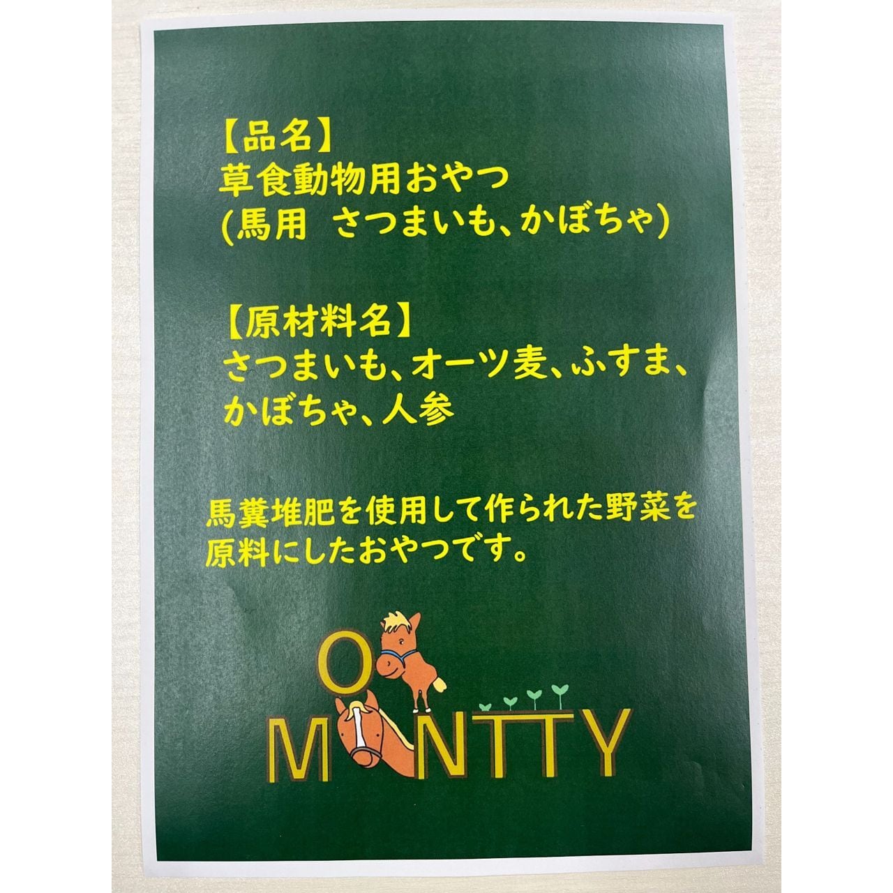 さつま芋、オーツ麦、ふすま、かぼちゃ、にんじん(全て国内産)